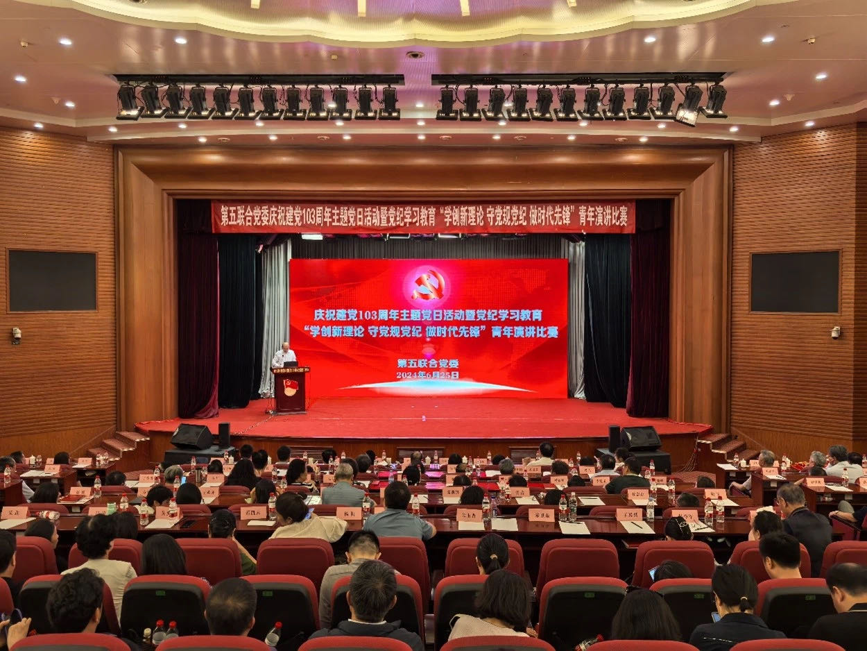 6月25日,第五聯(lián)合黨委組織開展慶祝建黨103周年主題黨日活動(dòng)暨黨紀(jì)學(xué)習(xí)教育“學(xué)創(chuàng)新理論 守黨規(guī)黨紀(jì) 做時(shí)代先鋒”青年演講比賽,慶祝中國(guó)共產(chǎn)黨成立103周年,深入學(xué)習(xí)貫徹黨的二十大精神和習(xí)近平總書記關(guān)于黨的紀(jì)律建設(shè)的重要論述,引導(dǎo)廣大黨員堅(jiān)定不移聽黨話、跟黨走,堅(jiān)定擁護(hù)“兩個(gè)確立”,堅(jiān)決做到“兩個(gè)維護(hù)”,真正把紀(jì)律規(guī)矩轉(zhuǎn)化為政治自覺、思想自覺、行動(dòng)自覺,進(jìn)一步推動(dòng)全面從嚴(yán)治黨向基層延伸、向縱深發(fā)展,進(jìn)一步推進(jìn)黨紀(jì)學(xué)習(xí)教育走深走實(shí)、見行見效。中央社會(huì)工作部三局有關(guān)同志蒞臨主題黨日活動(dòng)并指導(dǎo)工作?;顒?dòng)由第五聯(lián)合黨委副書記兼紀(jì)檢委員夏岑燦主持。第五聯(lián)合黨委所屬35家協(xié)會(huì)有關(guān)負(fù)責(zé)人、黨組織負(fù)責(zé)人、全體黨員和入黨積極分子等360余人參加會(huì)議。
