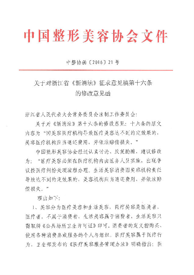 關(guān)于對浙江省《新消法》征求意見稿第十六條的修改意見函