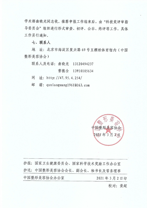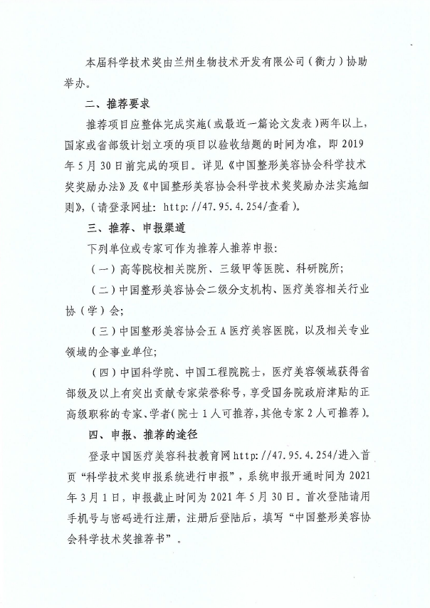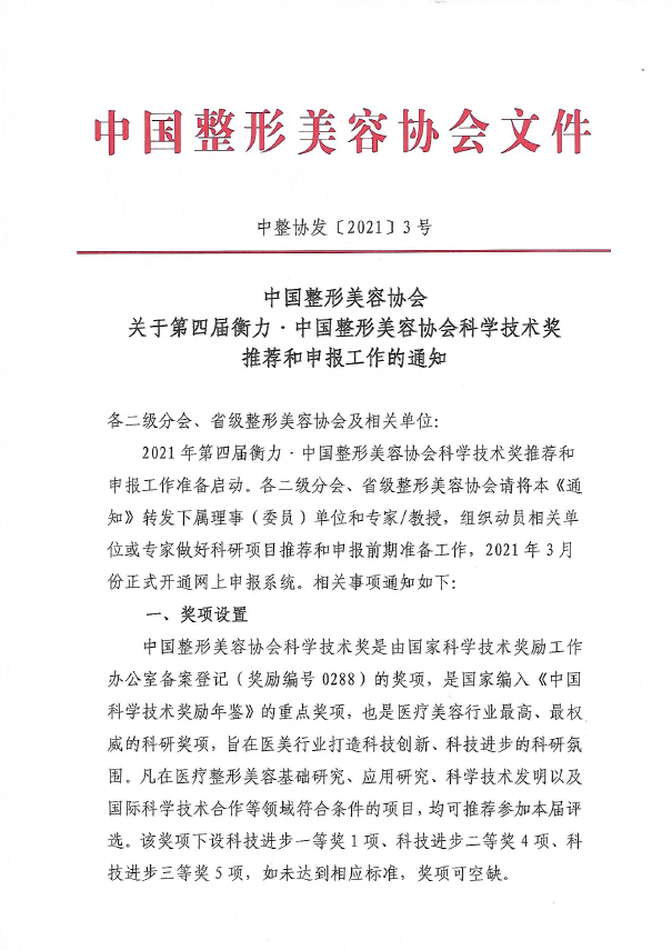 關于第四屆衡力·中國整形美容協(xié)會科學技術獎推薦和申報工作的通知