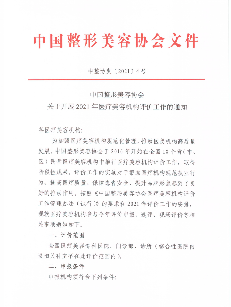 中整協(xié)關(guān)于開展2021年醫(yī)療美容機(jī)構(gòu)評(píng)價(jià)工作的通知