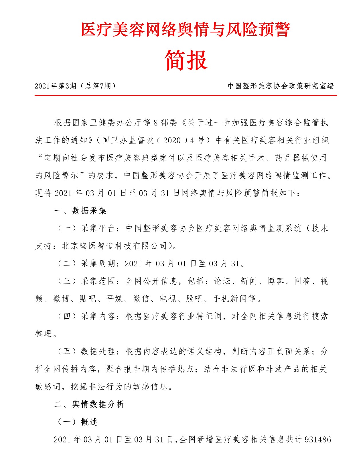 醫(yī)療美容網(wǎng)絡輿情與風險預警簡報2021年第3期3月1日至31日.pdf
