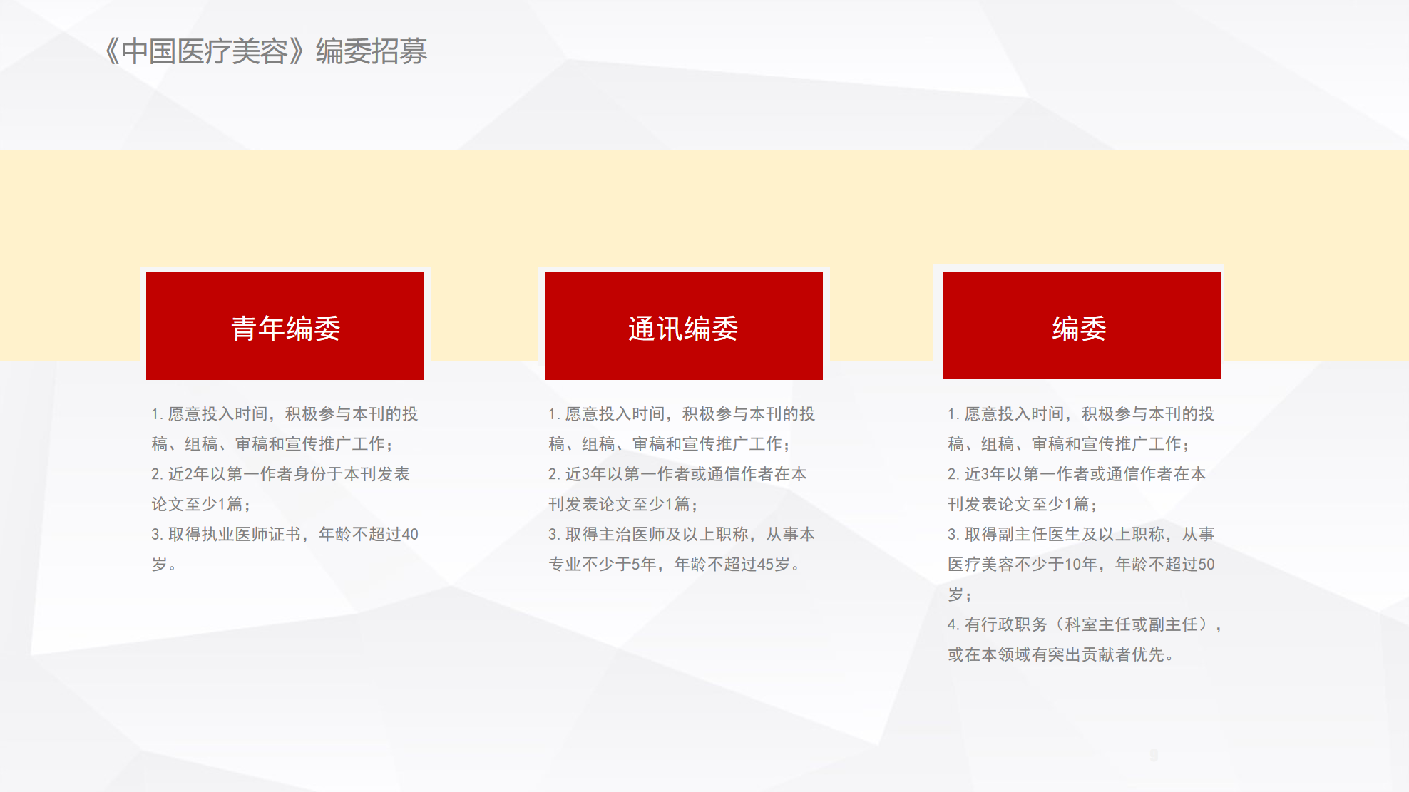 《中國(guó)醫(yī)療美容》是由國(guó)家衛(wèi)生健康委員會(huì)主管、中國(guó)整形美容協(xié)會(huì)主辦的學(xué)術(shù)期刊。創(chuàng)刊十余載,雜志社積累了豐富的出版經(jīng)驗(yàn)及學(xué)術(shù)服務(wù)經(jīng)驗(yàn),目前我們正在打造面向醫(yī)生、企業(yè)、醫(yī)療機(jī)構(gòu)的全方位學(xué)術(shù)服務(wù)平臺(tái)。