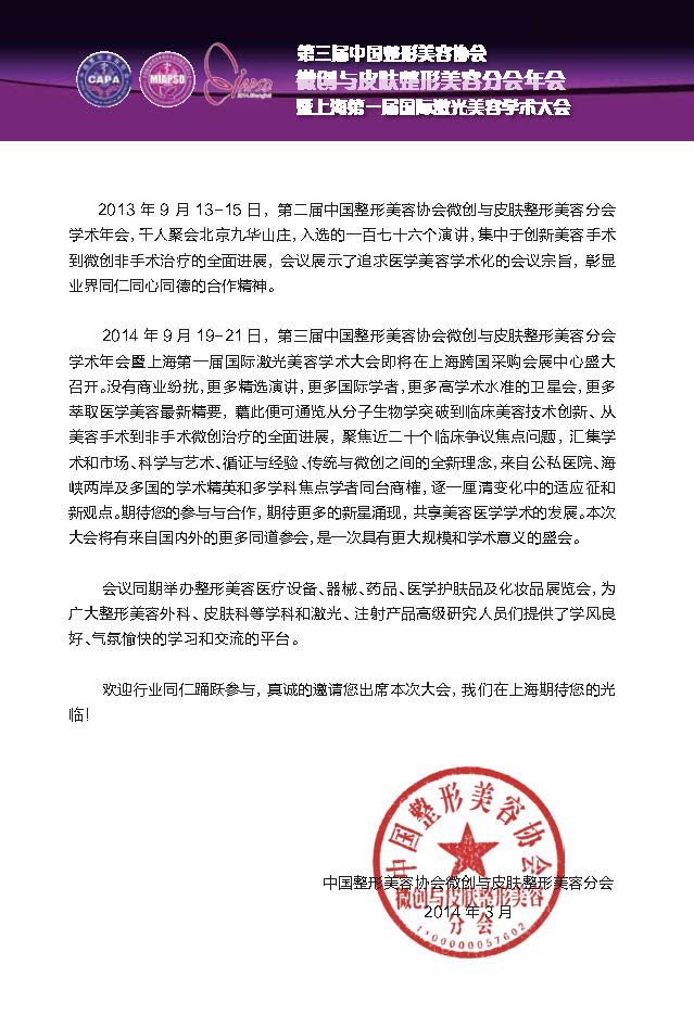 第三屆微創(chuàng)與皮膚整形美容分會學(xué)術(shù)年會暨第一屆上海國際激光美容學(xué)術(shù)大會
