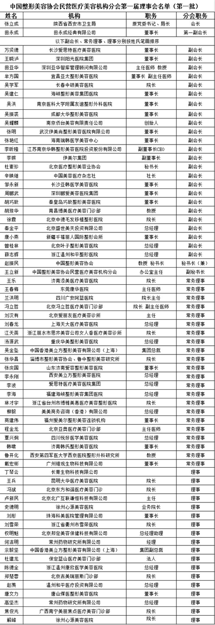 中國(guó)整形美容協(xié)會(huì)民營(yíng)醫(yī)療美容機(jī)構(gòu)分會(huì)第一屆理事會(huì)名單(第一批)