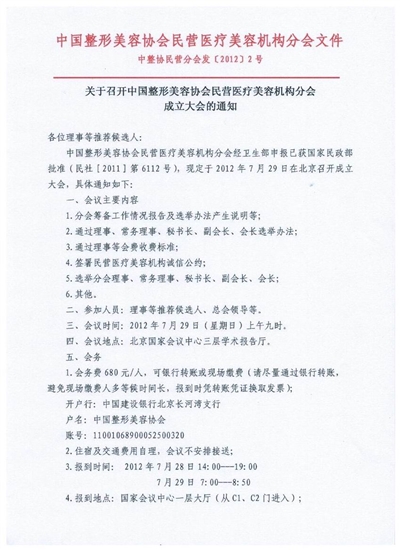 關(guān)于召開民營醫(yī)療美容機(jī)構(gòu)分會成立大會的通知