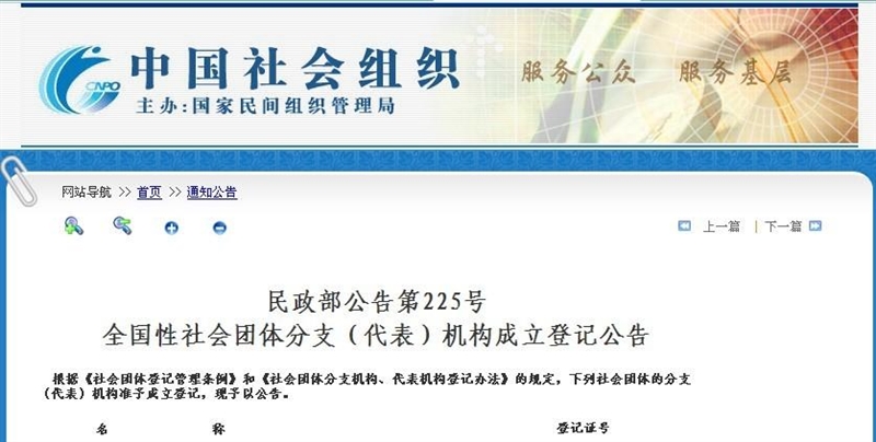 全國性社會團(tuán)體分支(代表)機(jī)構(gòu)成立登記公告